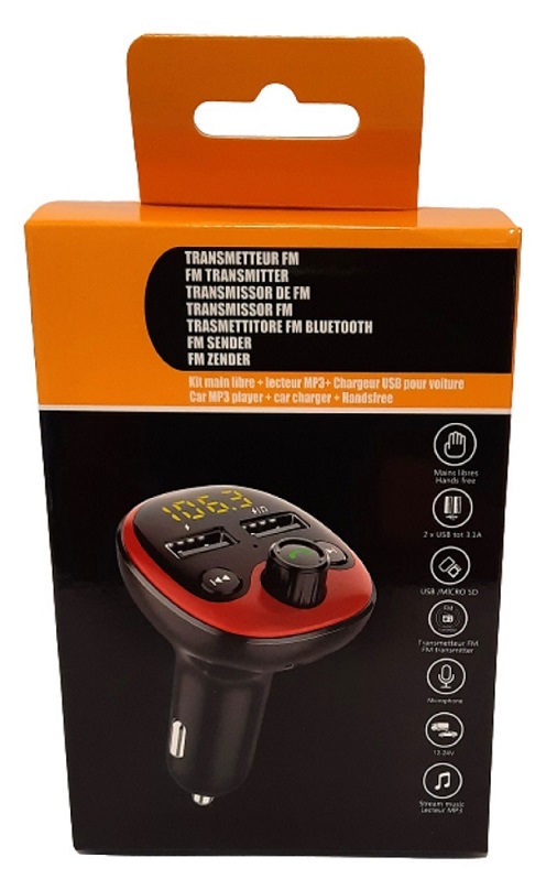Ce produit possède deux chargeurs USB (3,1A total cumulé), un lecteur de carte micro SD. Il est aussi équipé d'un micro afin de passer vos appels en sécurité. Permet d'écouter de la musique ou une conversation téléphonique d'un appareil bluetooth sur la radio de votre véhicule.