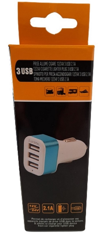 Prise Allume Cigare 12V / 24 V 3 USB- A - 2,1 A total