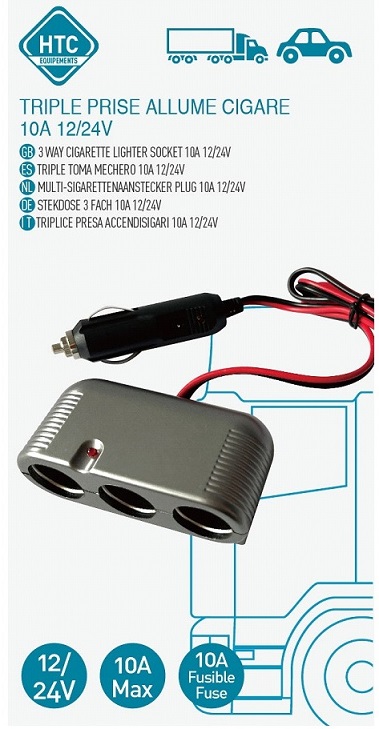 Triple prise allume Cigare 12V / 24V Haute puissance 10A
