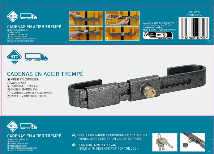 Ouverture de 22cm à 42cm. S'adapte parfaitement aux portes de container ou de fourgons