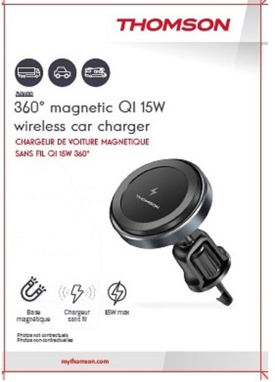 SUPPORT ET CHARGEUR DE VOITURE MAGNETIQUE THOMSON SANS FIL QI 15W ORIENTABLE 360°