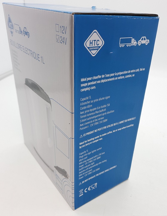 LIvré avec cordon allume cigare 60cm. Avec couvercle et bec verseur