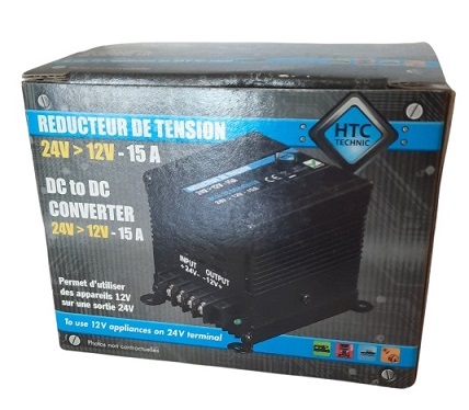 Convertisseur de tension de 24V a 12V, 15A + 2 prises allume-cigare femelle puissance 180W