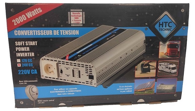 Convertisseur de tension 24V / 220V 2000W avec télécommande