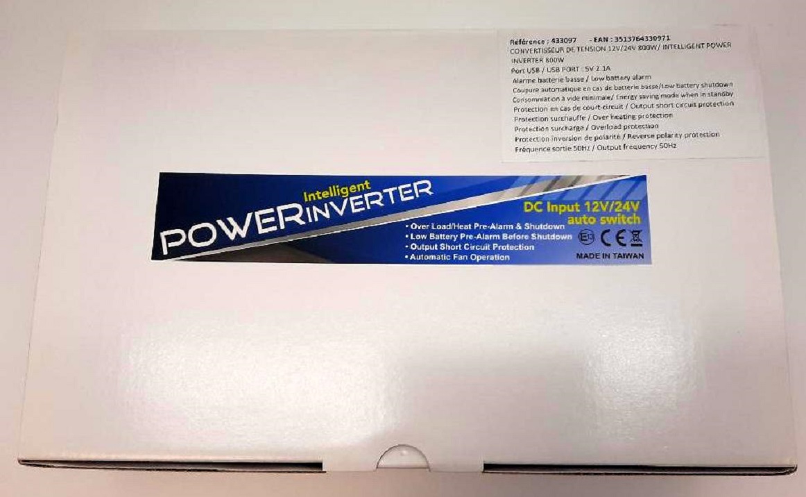 Convertisseur 12V / 24V automatique vers 230V 800W avec prise USB 2.1A