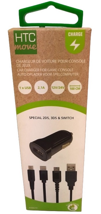 Chargeur allume cigare 12V / 24V 2.1A compatible consoles Nintendo 2DS / 2DSLIte / 3DS / 3 DSXL / Switch