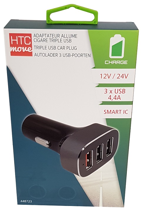 Prise allume cigare 12V / 24V 3 USB 4.4A total avec led
