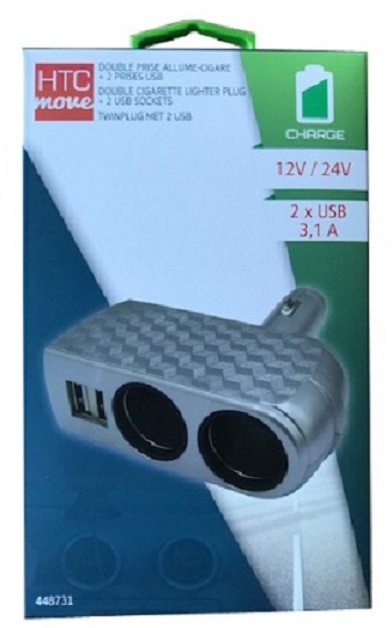 2 prises Allume-cigare 5A total et 2 prise USB 3,1A total