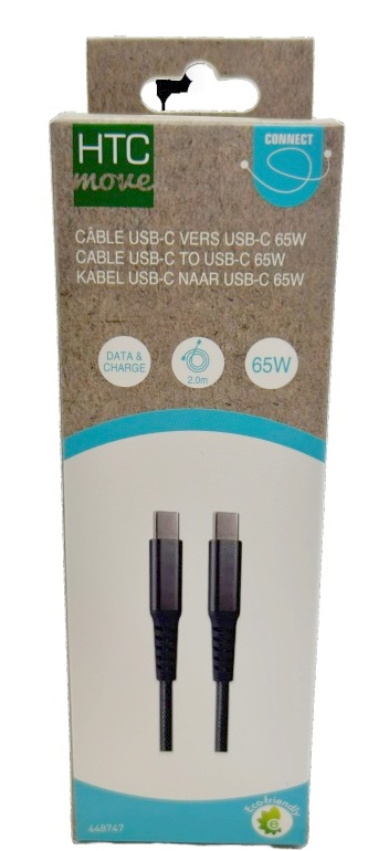 Câble de charge et données tressé USB-C vers USB-C 65W