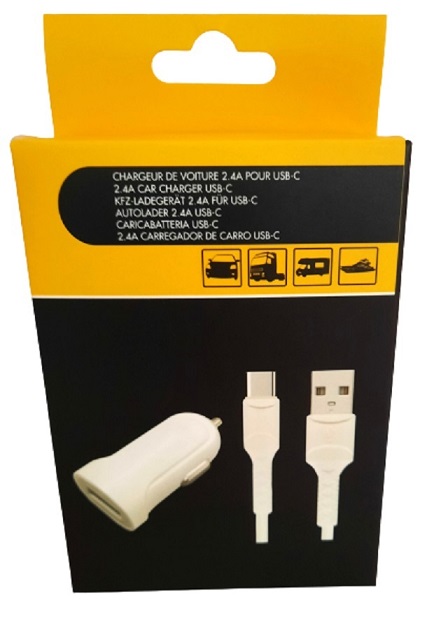 Chargeur allume cigare 12V / 24V USB A 2.4 A avec câble USB C 1 metre