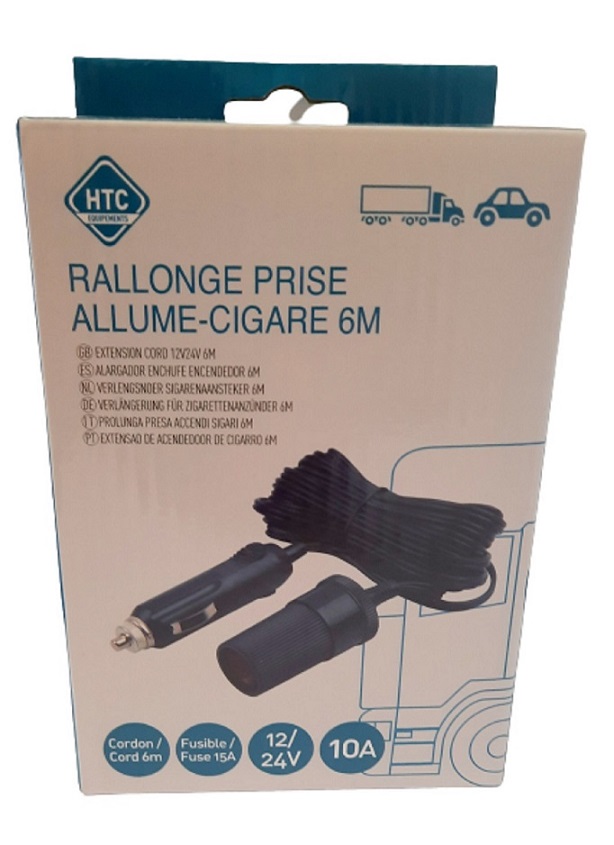 Rallonge allume-cigare 6M 10A + fusible 15A