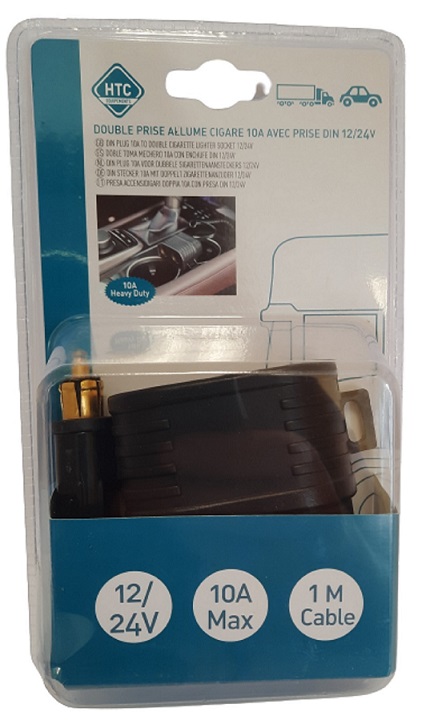 Double prise allume cigare connecteur DIN 12V / 24V haute puissance 10A