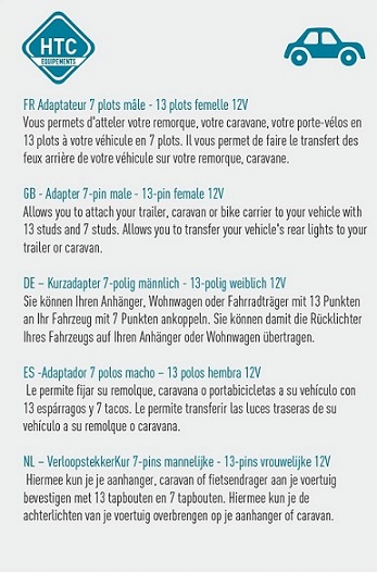 Vous permet d'atteler votre remorque, votre caravane, vvotre porte vélo en 13 plots à votre véhicule en 7 plots