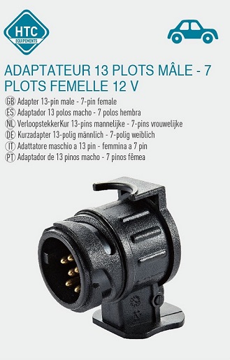 Adaptateur 13 Plots Mâle vers 7 Plots Femelle – 12V
