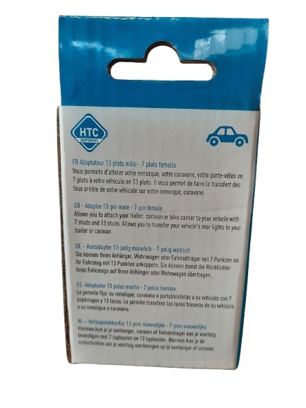 Cet adaptateur 13 plots mâle vers 7 plots femelle vous permet de raccorder facilement une remorque, caravane ou porte-vélos en 13 plots à un véhicule équipé d’une prise 7 plots.