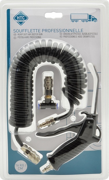 Le kit contient un tuyau torsadé en polyuréthane de 5m, d' un raccord rapide en T avec une soupape de fermeture automatique à bille de bronze. Ce raccord rapide peut être installé sur le tuyau (diam 6 ou 8mm) d'air comprimé de la cabine afin de pouvoir brancher ou débrancher la soufflette très rapidement