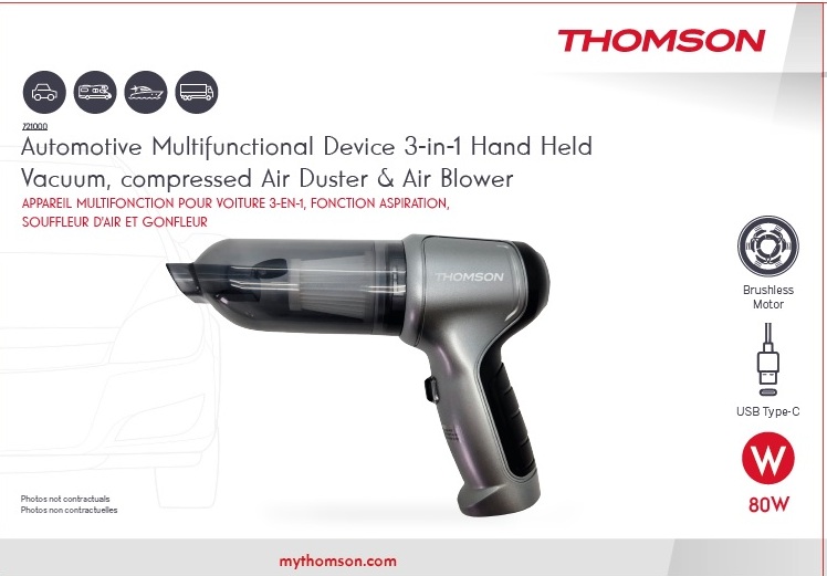 APPAREIL MULTIFONCTION THOMSON POUR VOITURE 3 EN 1 80W AVEC ACCESSOIRES