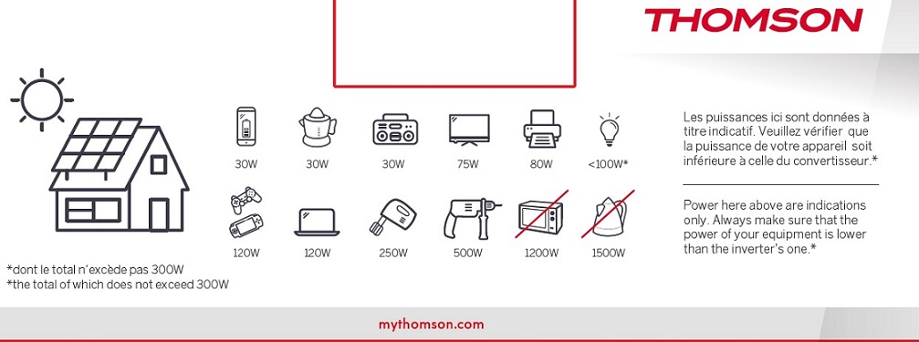 CONVERTISSEUR DE TENSION THOMSON 12V / 220V 600W AVEC PRISE USB-A 2A