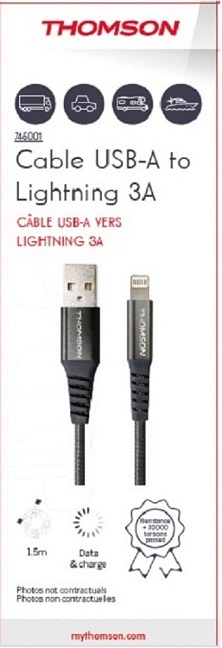 CÂBLE THOMSON USB-A VERS LIGHTNING 3A