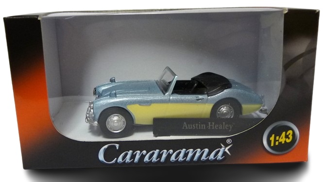 Voiture vintage Austin Healey bleu et blanc 1/43ème